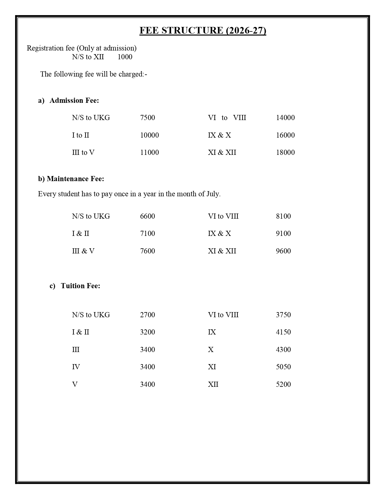 | 8 | FEE STRUCTURE 2026-27 | |